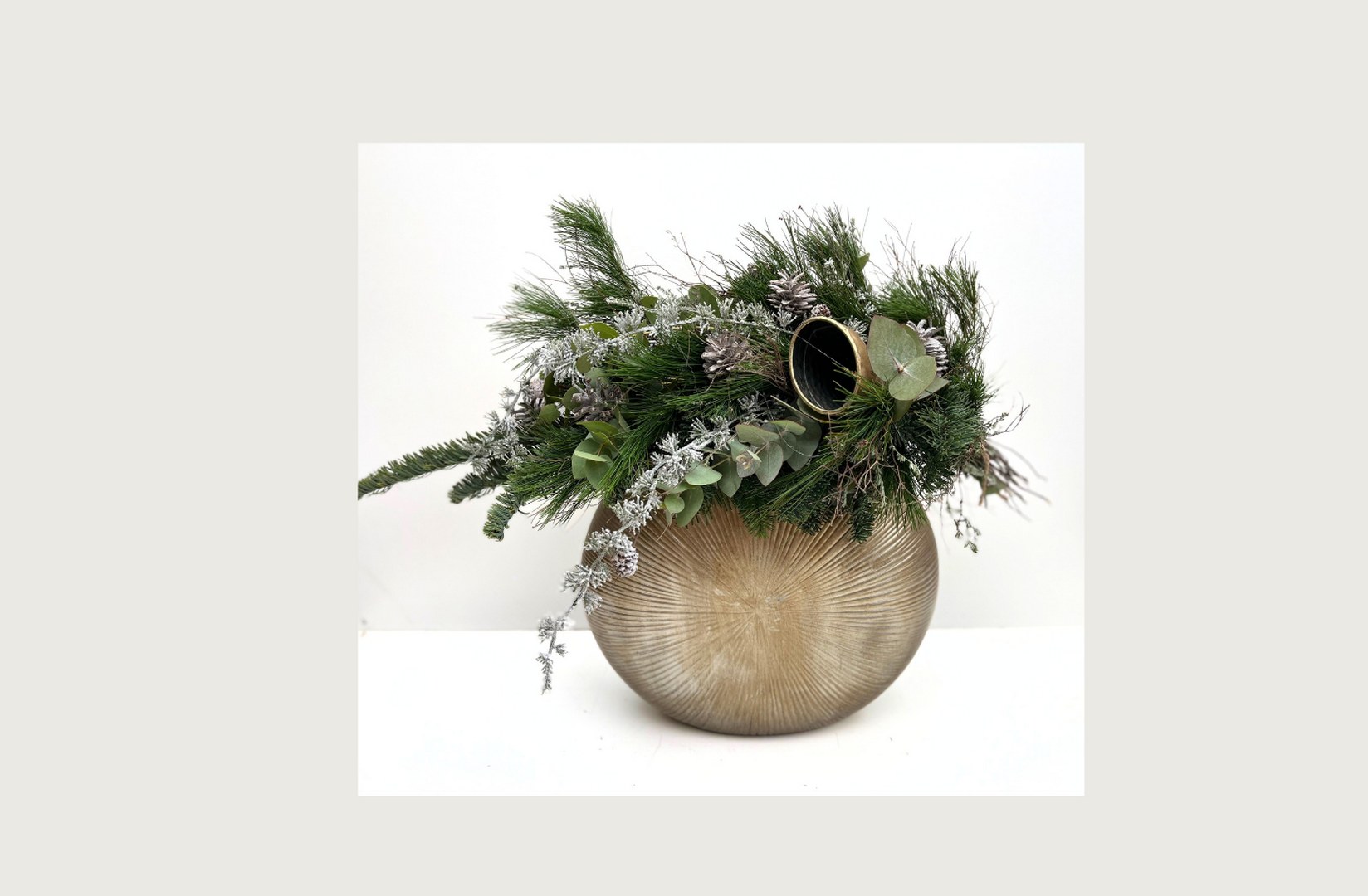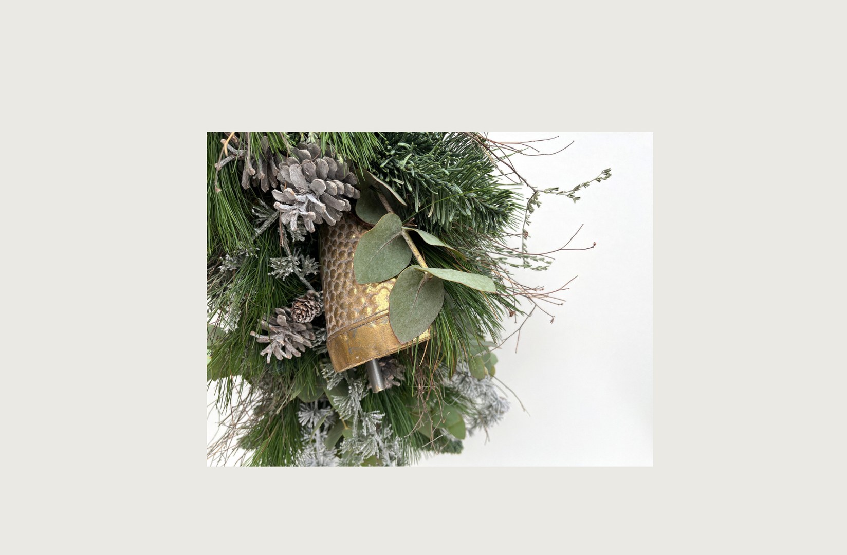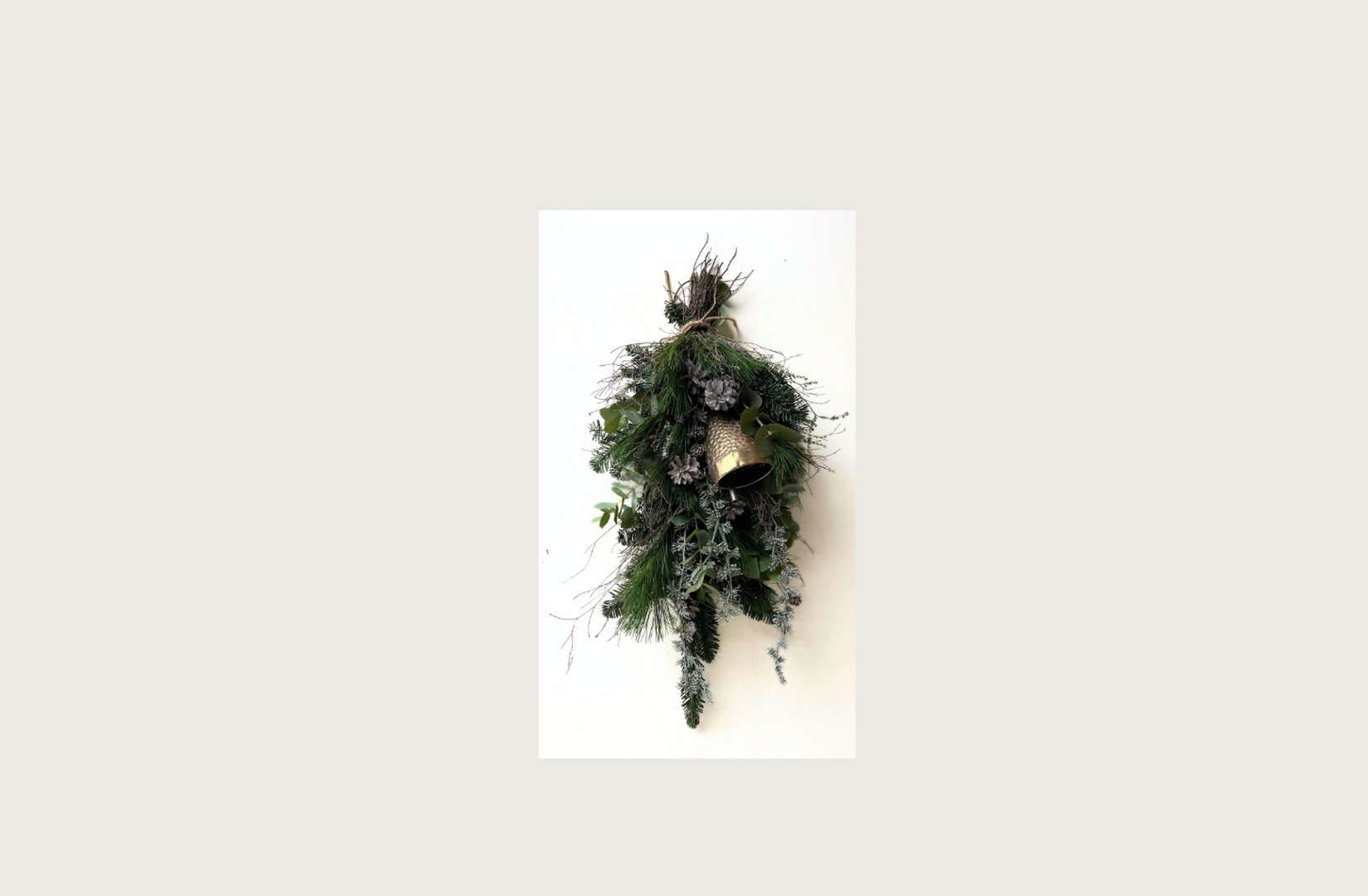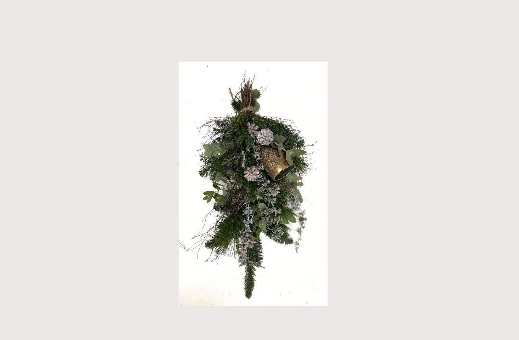 Materiaal: bel, lariksslinger, pinus, eucalyptus, thijm, dennenappels, jute touw (excl. pot).